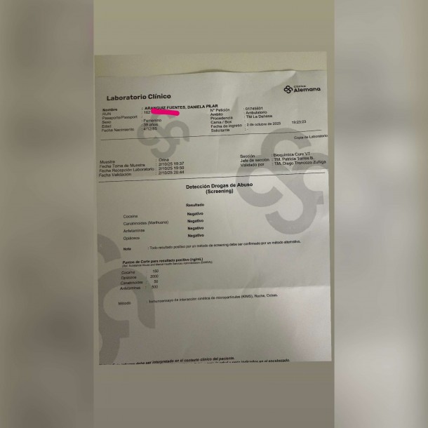 “Un mal ejemplo a seguir es ser una mentirosa como tú, que dices que superaste tus adicciones y te tienen que sacar arrastrando de las discotecas. Eres una drogadicta”, señaló Aránguiz en pantalla. Luego la desafió a realizarse un examen de sangre para probar públicamente si está rehabilitada.